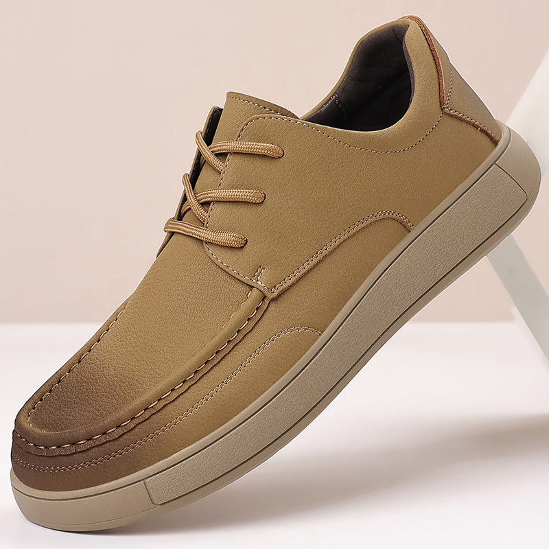 Men's Casual Leather Shoes Fashion Thick-Soled Breathable Retro Low-Top Shoes