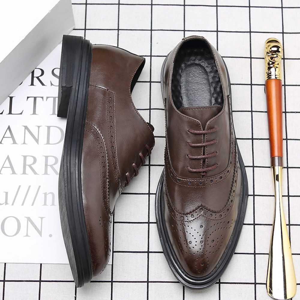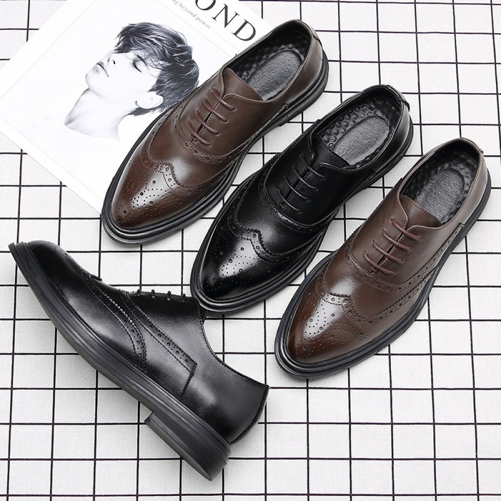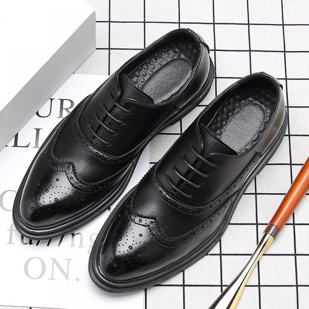 Autumn Bullock Men's Shoes British Trendy Shoes Casual Business Dress Shoes Mens Pointed Black Small Leather Shoes