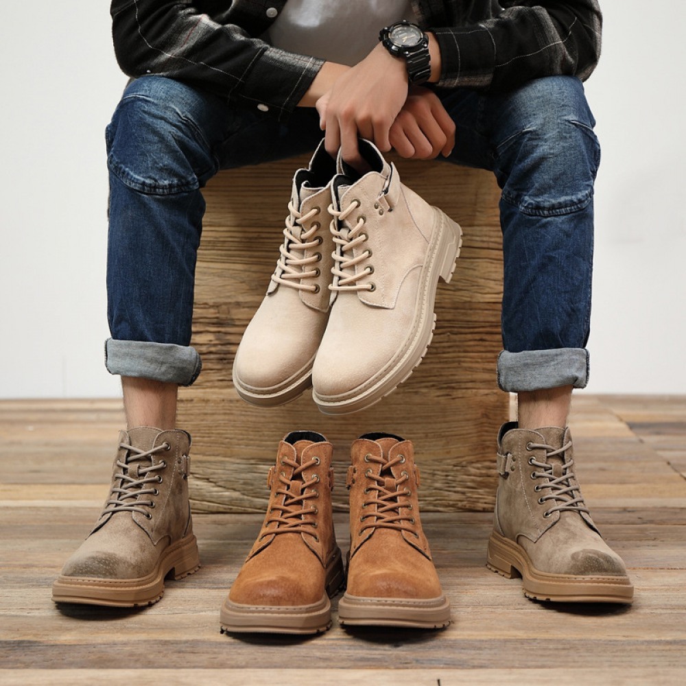 Martin Boots Men's New British Short Boots Mid-Cut Boots Trendy Shoes High-Top Military Boots
