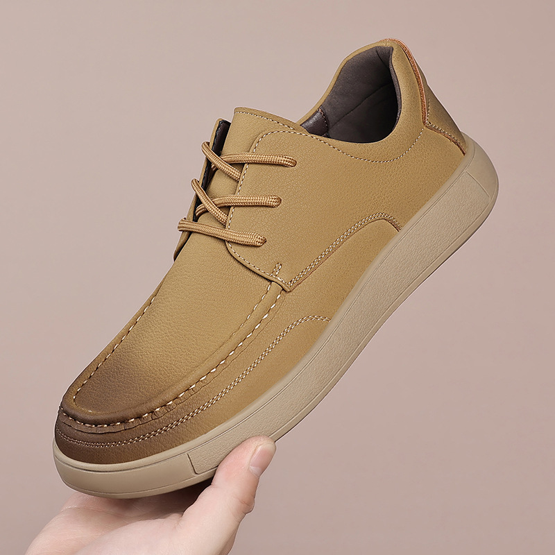 Men's Casual Leather Shoes Fashion Thick-Soled Breathable Retro Low-Top Shoes