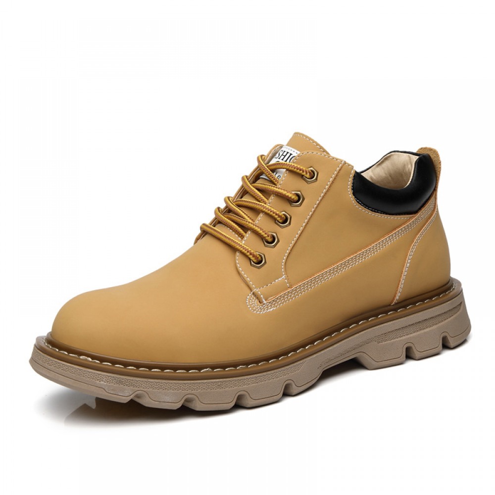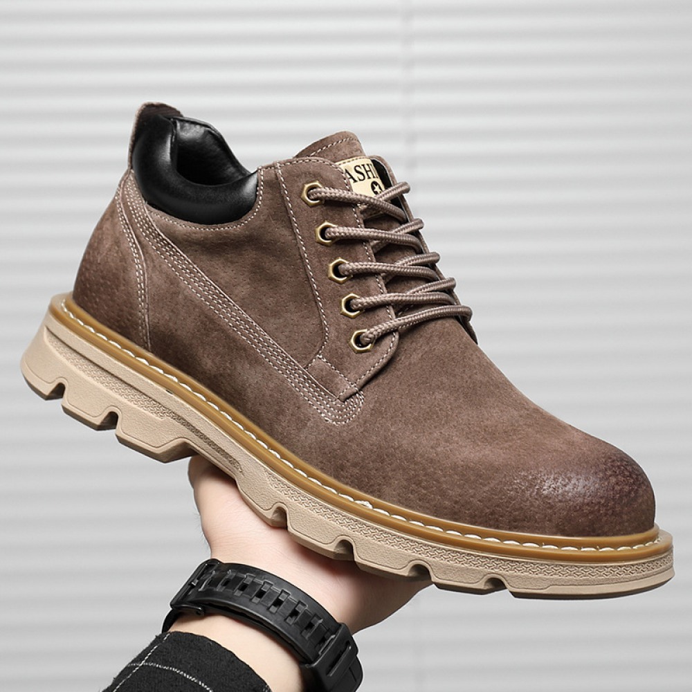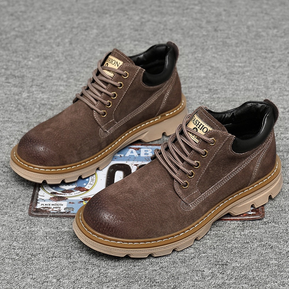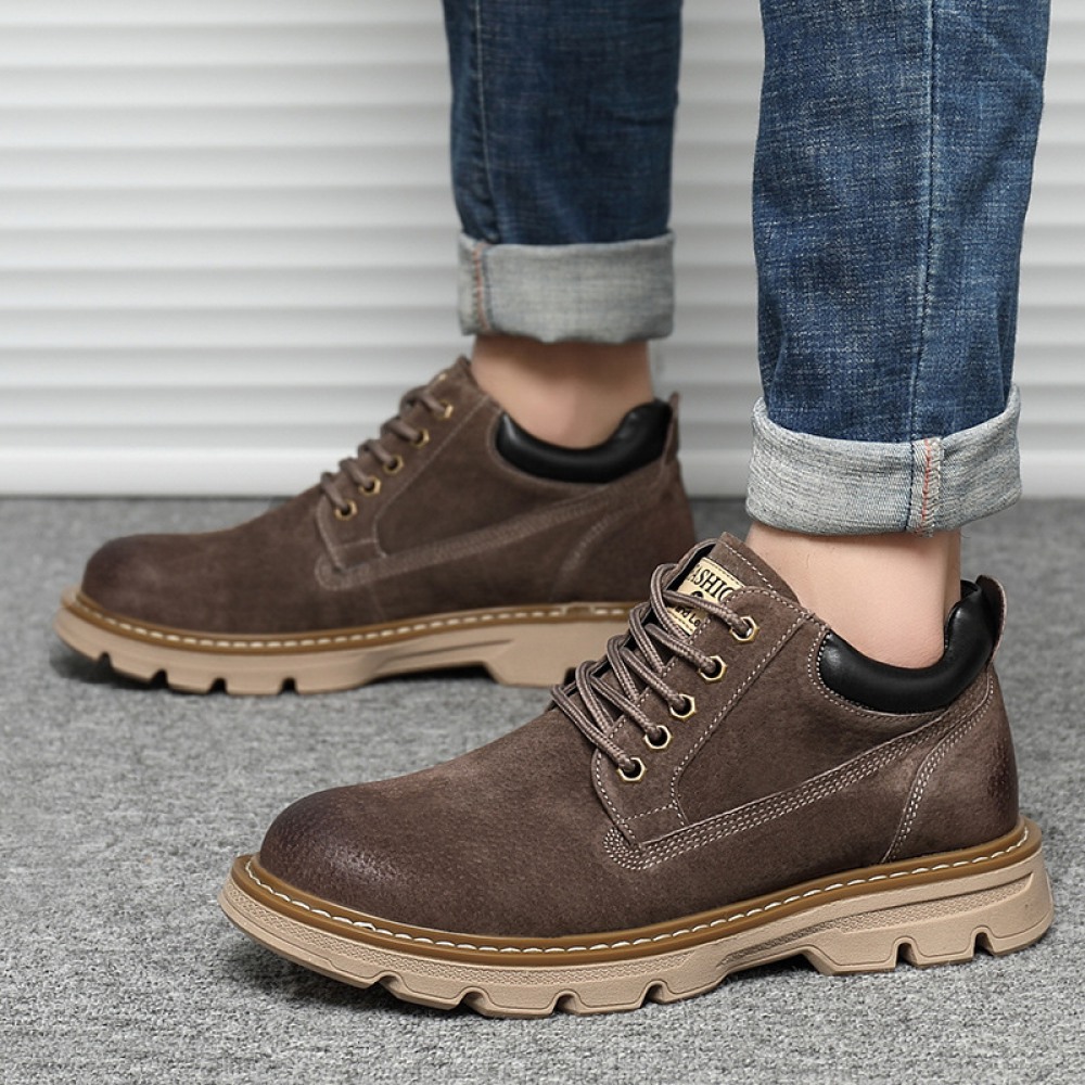 Men's Round Toe Casual Men's Leather Boots Front Lace-Up Martin Boots Flat Heel Men Shoes