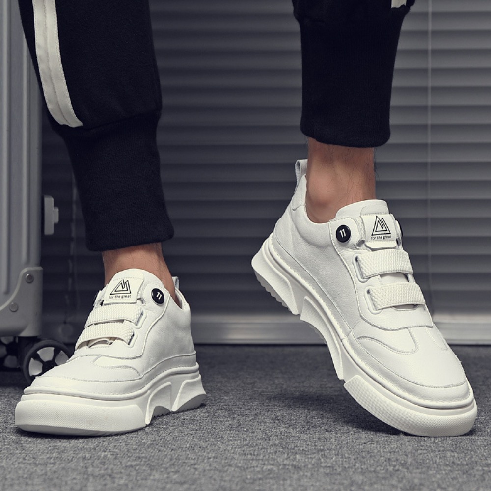 Summer New Pure Leather White Shoes Men's Trend Casual Shoes Sneakers Men's Shoes White Trendy Shoes