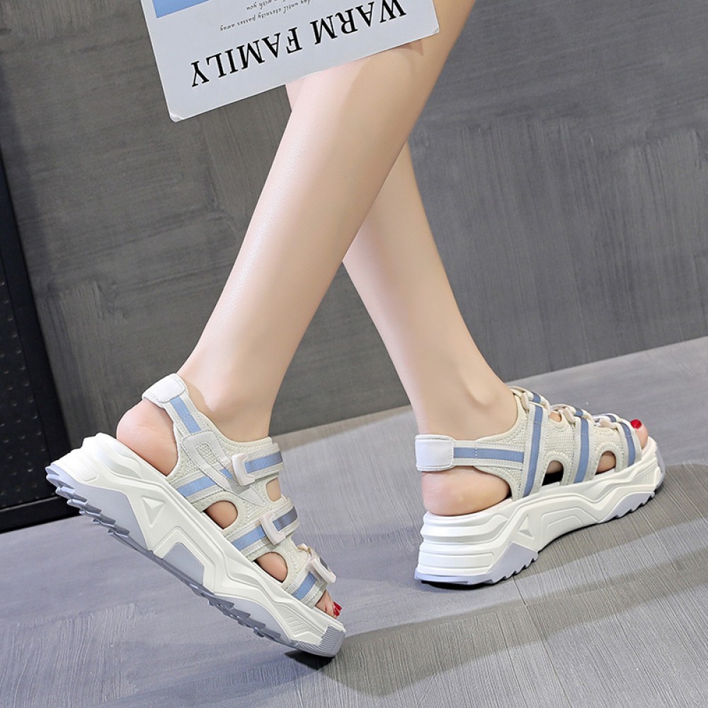 Sandals Women New Summer Velcro Beach Shoes Casual Platform Flat Shoes
