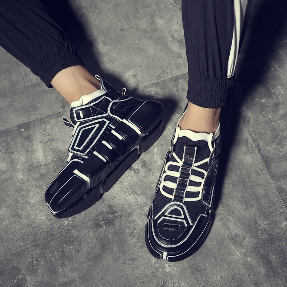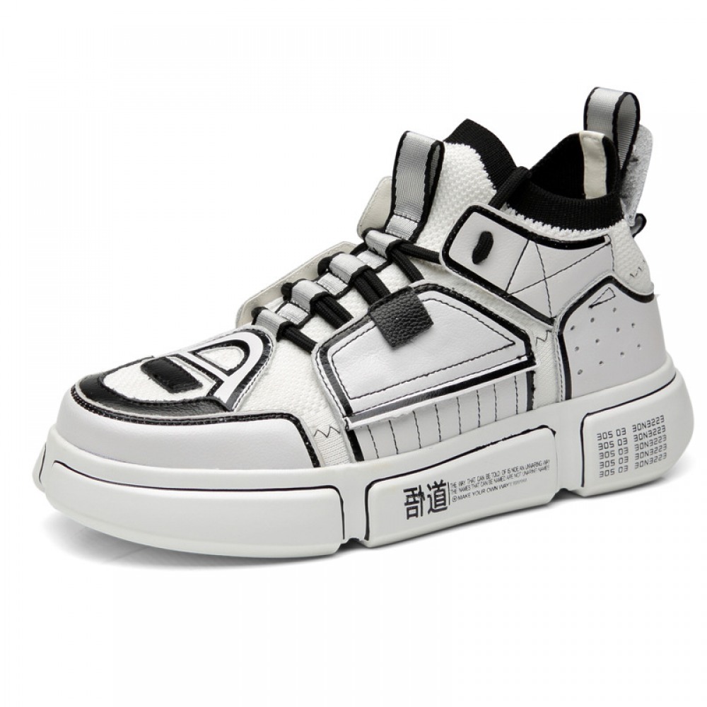 Men's Leather Shoes High-Top Sports Casual Sneakers