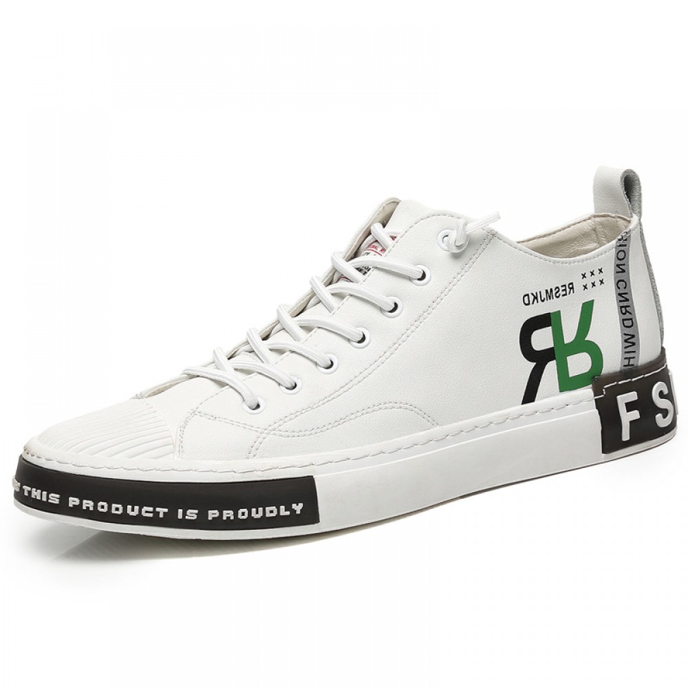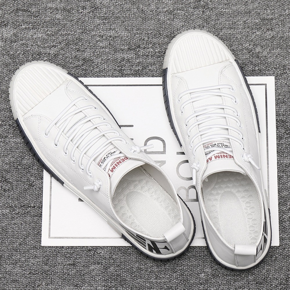 Summer Men's Board Shoes Soft Leather White Shoes Mens Leather Trendy Shoes Shell-Toe Daily Casual Shoes
