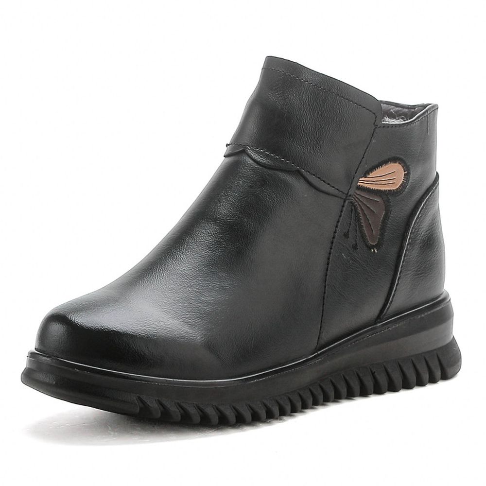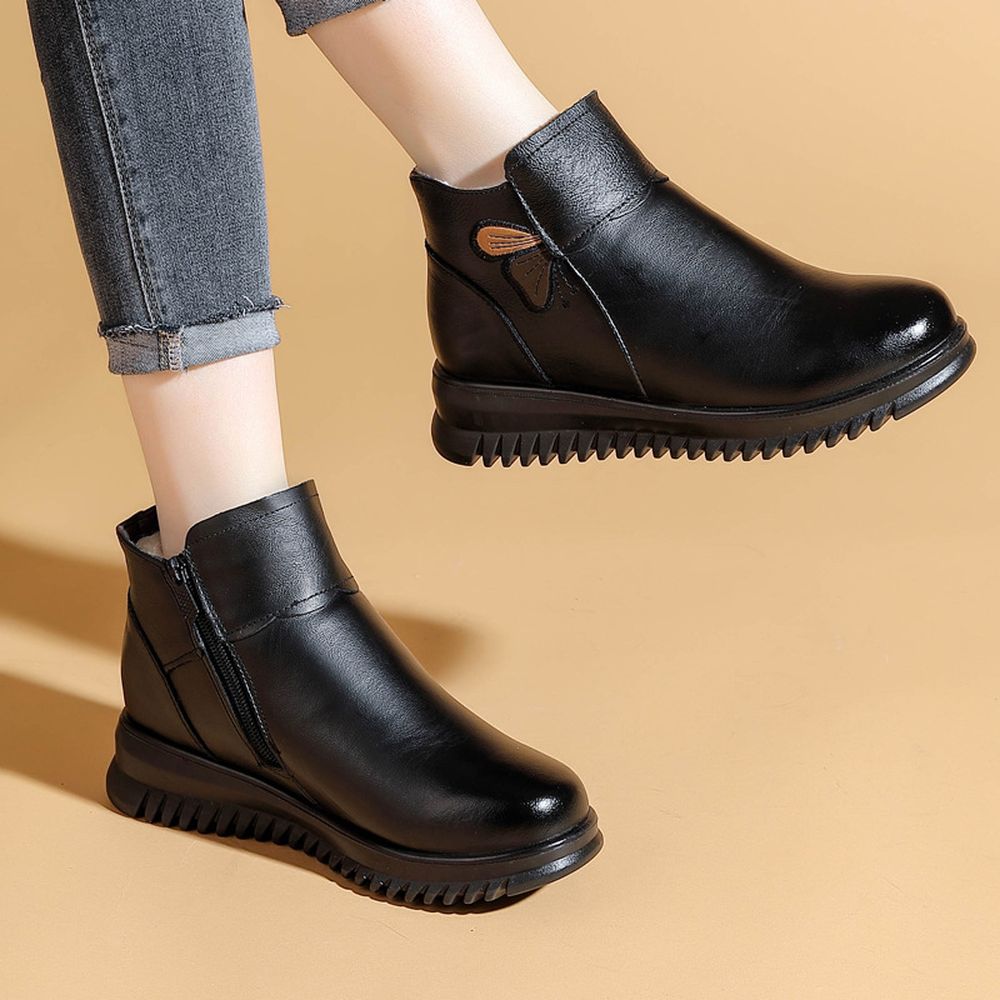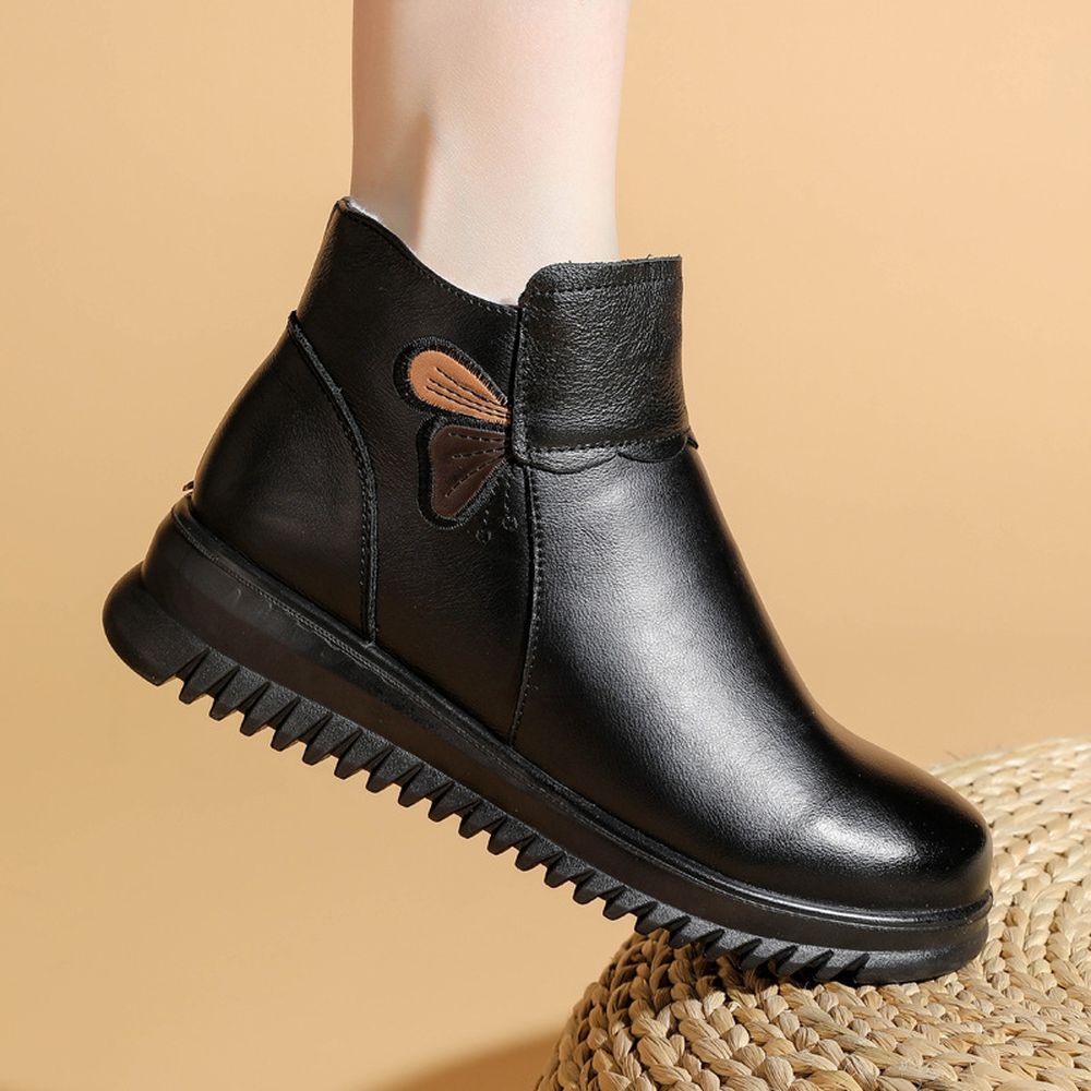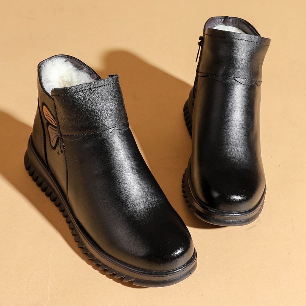 Women's Winter Velvet Thickened Short Snow Boots Soft Leather Boots