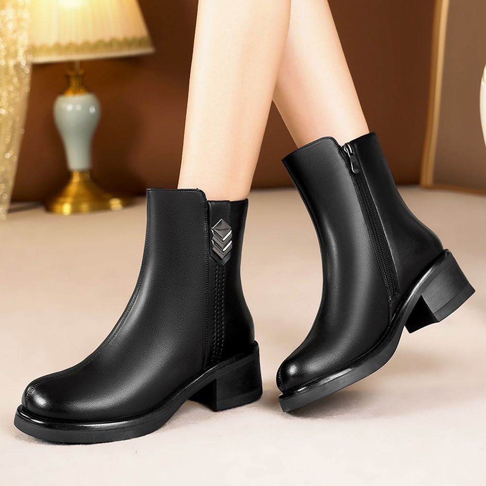 Women's Winter Velvet Thickened Short Snow Boots Soft Leather Boots